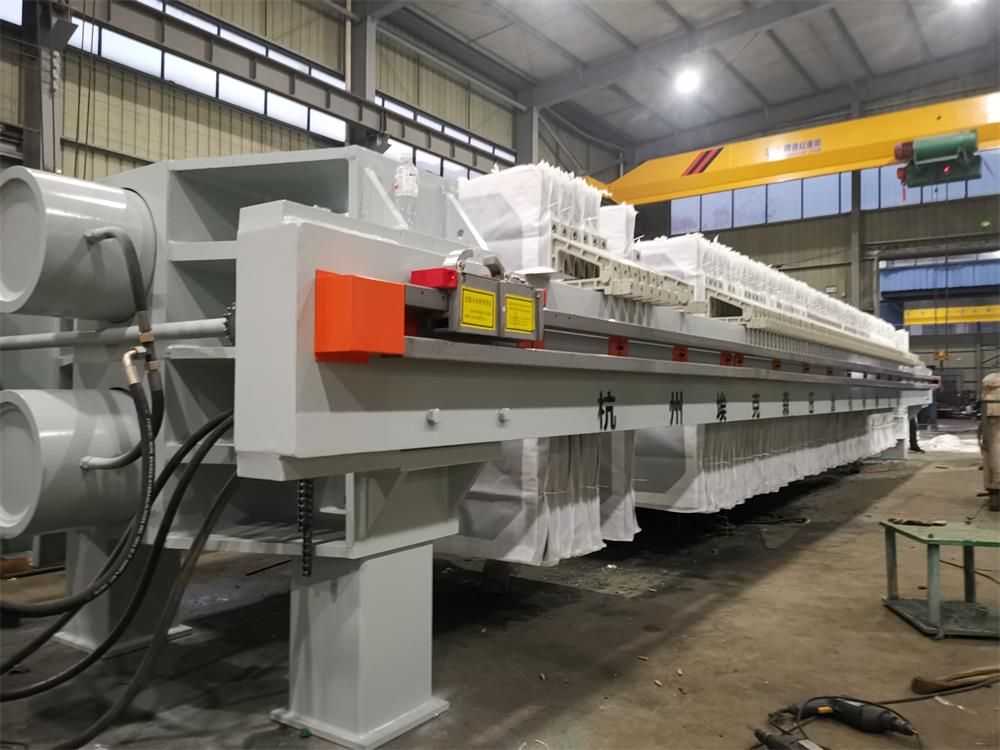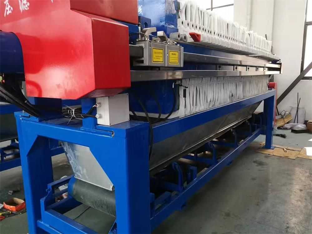 全自動廂式壓濾機與普通廂式壓濾機的不同之處在于多了自動拉板系統,自動接液翻板,自動清洗濾布等系統。使設備操作更加智能化自動化。整機結構設計科學合理,機械強度高、結構穩固、經久耐用并且便于操作和維護。